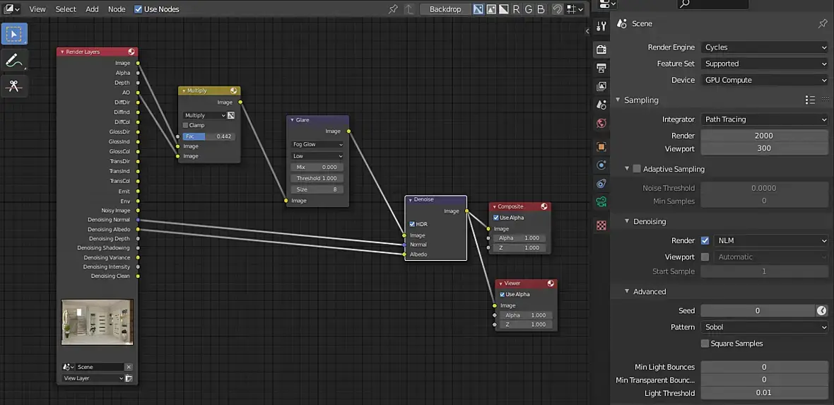 Поэтому шумоподавление никак не способно "испортить" картинку при 2-3 тысячах сэмплов. Во всяком случае на тех значениях, которые являются дефолтными (radius 25 также ничего не испортит). Картинка уже настолько высокодетализированна, что денойзер сглаживает уже невидимые глазу "микропиксели". Но при этом он выполняет "страховку" от артефактов, которые могут быть вызваны применением каустики.