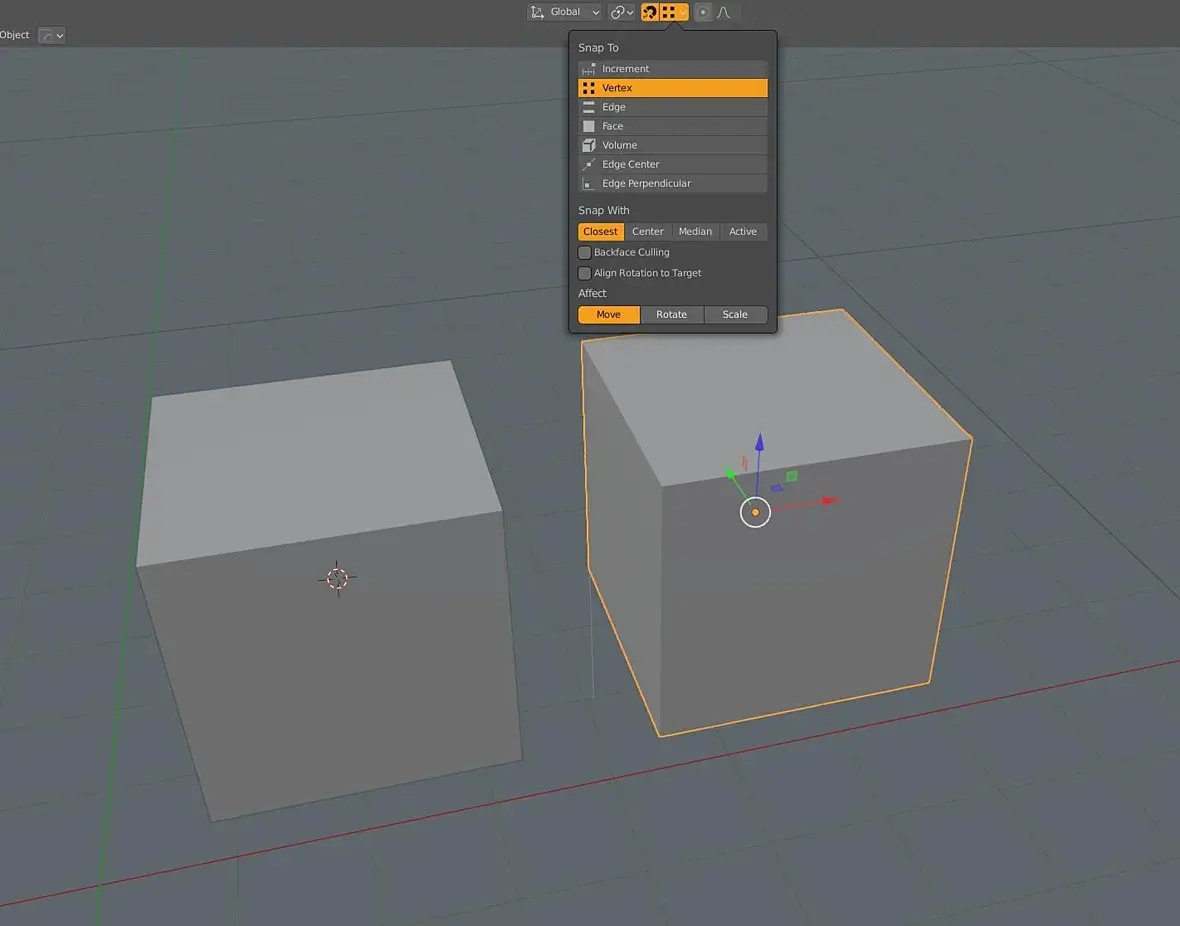Вот это и называется "костыль". Для особо зубастых поясняю. В максе: активируем привязку, берём обьект за нужную нам вершину, тащим к нужной вершине другого обьекта. Три простых удобных действия. То что предлагаешь ты в качестве аналога в Блене: переходим в режим редактирования, по "А" выделяем все вершины, с шифтом делаем нужную вершину активной, перетаскиваем все это добро на нужную вершину другого обьекта, выходим из режима редактирования, центруем ориджин по обьекту, если в исходном объекте ориджин был аккуратно выставлен в нужном месте - активно радуемся и идём по алгоритму перемещения ориджина в нужную точку, что отдельное развлечение :) Надеюсь разница заметна.