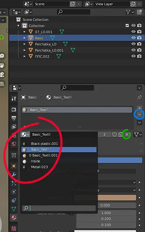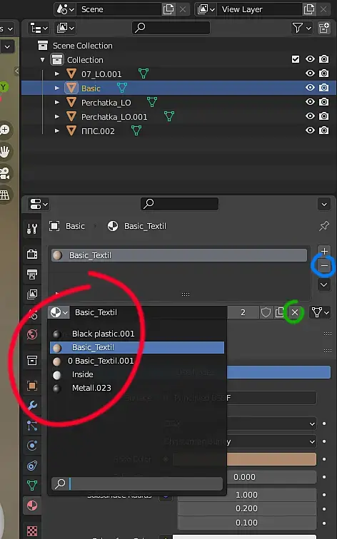 Еще можно со сжатым шифтом нажать на крестик. Перед названием материала появится 0. Он означает, что материал не используется и будет удален после перезапуска. Если материал нужно сохранить, то нажимаем на щит.
