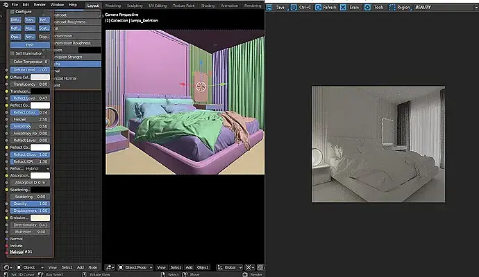 Да. Так смысл сравнения только в скорости. Вот на сколько хватило познаний переложил маты в Fstorm и просто выкрутил настройки. Виз без постобработки из буфера - 20мин GTX 1070. Шум остался, но вот денойзер Блендера бы вылизал его за уже давно. Не понятно почему Шторму не дадут денойзер, он уже бы ворвался...