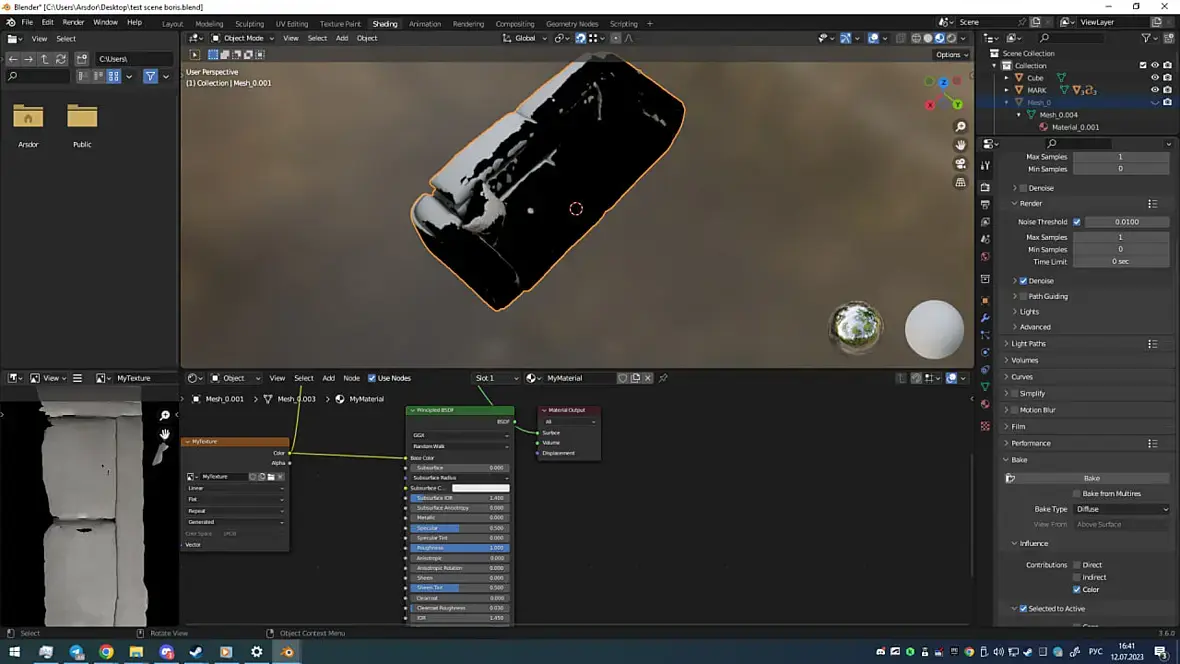 Добрый вечер, недавно начал работать в блендере, и от меня требуется запекать текстуру со скана на авторетопологию. При этом получается вот такой вот артефакт: