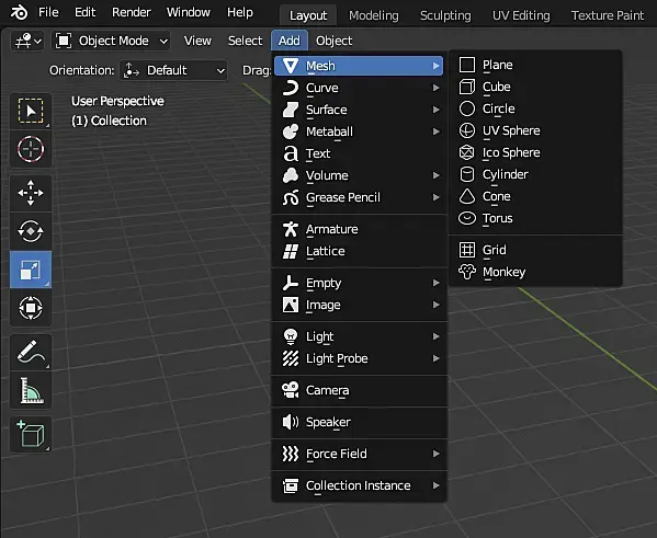 активируйте в аддонах экстра обджекс (в стандартной поставке).
