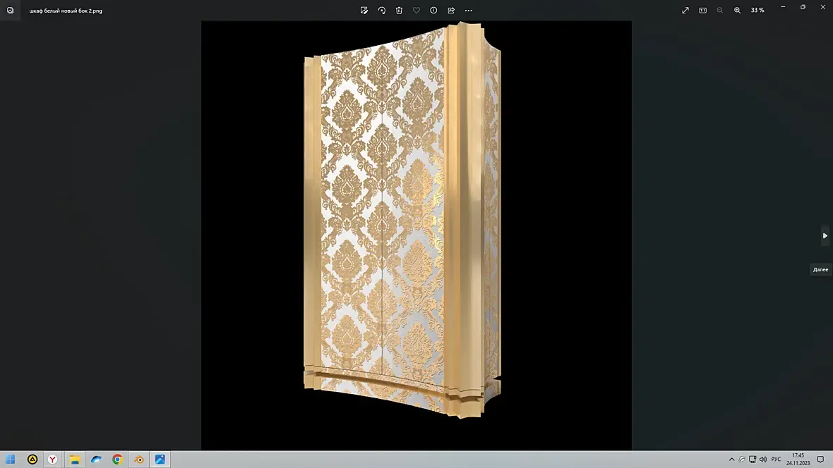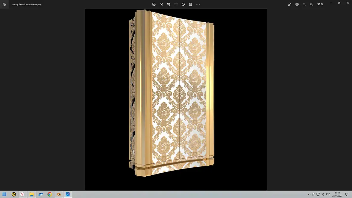 Привет, у меня проблемы с рендером в Cycles. Материал становится черным, хотя должен быть белым. На других сторонах шкафа он отображается корректно, пока я их не начинаю поворачивать их лицом в то же направление, что и темная сторона. Света вроде хватает. Если его добавляю получается пересвет на золотых частях. Возможно я не понимаю как правильно создать материал. Буду рада советам как исправить)