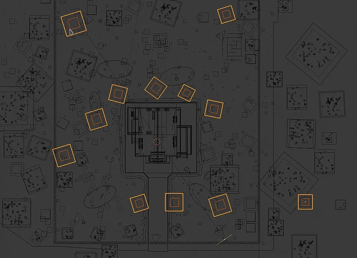 На своих сценах я расставляю ручками как раз плоскости с дуплифейсами, но у меня не сложно. Примерно так в плане выглядит.