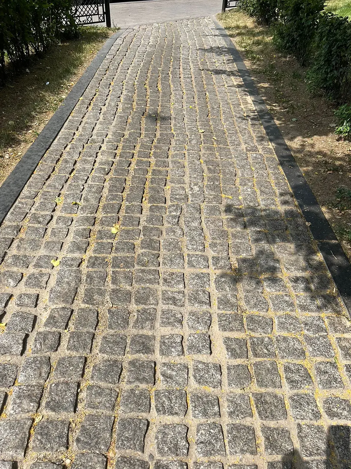 Можно сделать в RailClone как быстро, но под ракурс, так и подольше, но будет как в жизни. Там главная сложность в том, что некоторые брусчатки отличаются по размеру, ведь каждый круг больше предыдущего не кратно размеру элемента.