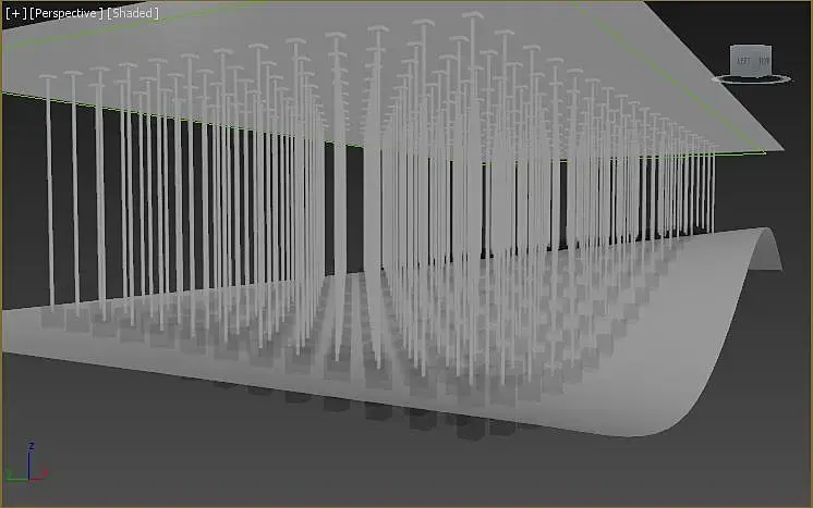 как я понял он по плоскости обьекты расставляет, наверно не так выразился, нужно не по поверхности расставить светильники, а с привязкой к ней и потолку, изменяя только длину провода.