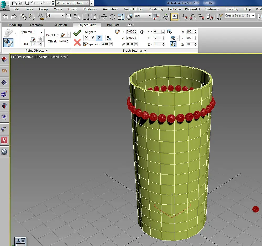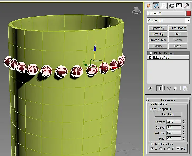 Дверца печи, еще не страшно, но например нужно сделать цилиндр и так же по кругу пустить кучу заклепок. Приходит в голову только вычислить координату оси цилиндра и при использовании Array расставлять относительно нее.