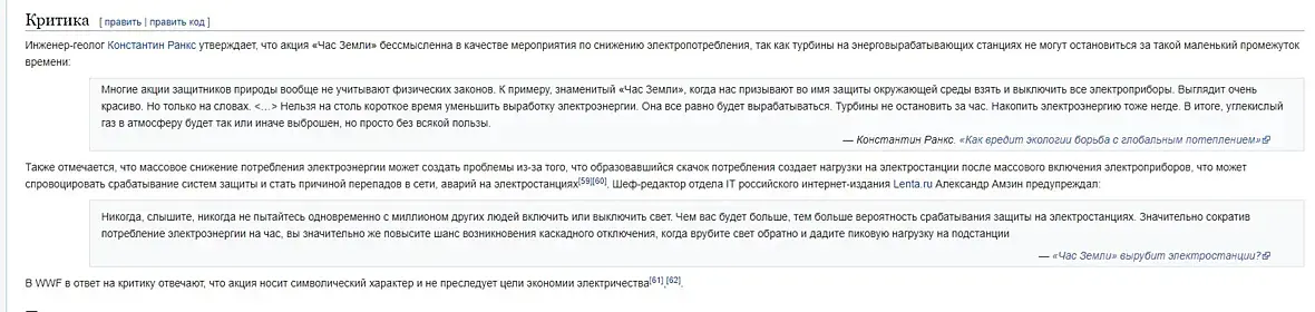 Я бы не рассуждал так категорично, если не привлекать внимание к проблеме других людей, то эффект будет малозначительным, но ко всему нужно подходить более продумано и организовано, да я согласен, что резкая нагрузка на электросеть не есть хорошо. Решение проблемы как раз кроется в участии каждого человека, и не говорю именно об этой акции, это акция объединяет людей для осознания ситуации, а именно влияние каждого человека, на выбросы в окружающую среду, умноженное на количество людей.