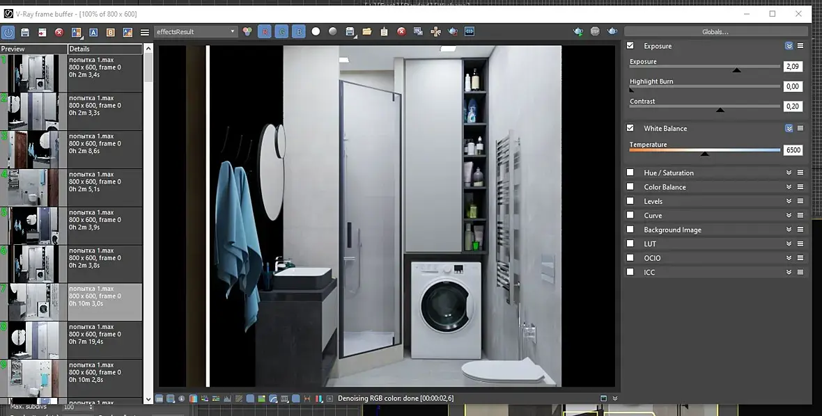 Прошу помощи знатоков! Сцена крохотная, санузел. Все стены в камерах отображаются, материал на всех тот же. При рендере левая стена черная. Заново ставила стену, "перекрашивала", сбрасывала настройки рендера, перезагружала макс, результат один. Даже сцену крутила. Все равно: левая стена черная! Настройки рендера обычные.