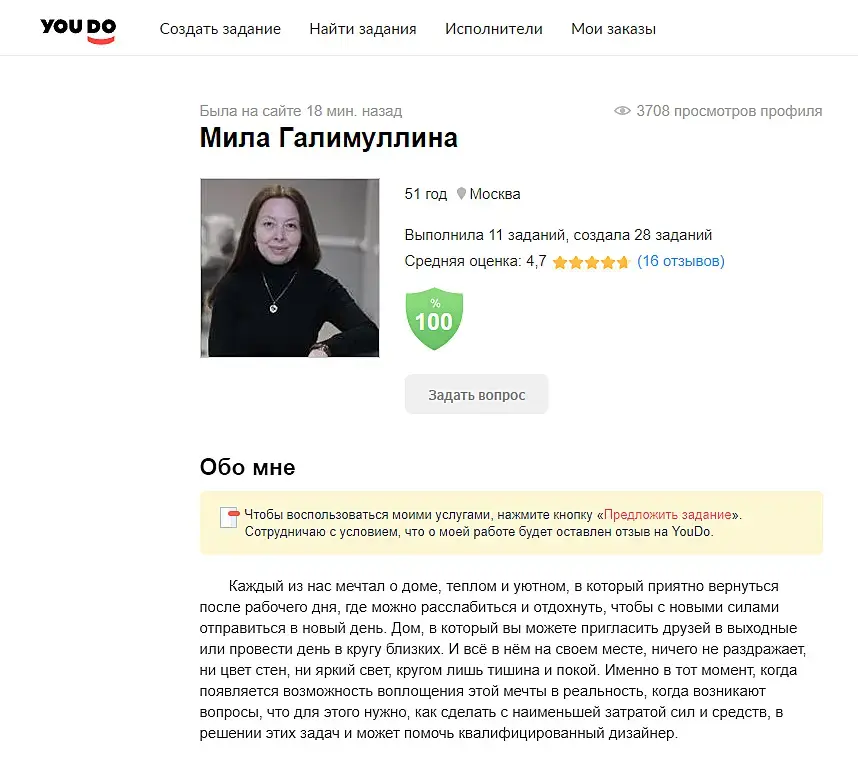 Здравствуйте! Меня зовут Даниил, я - 3d визуализатор интерьеров.Столкнулся с мошенничеством со стороны заказчика - дизайнера Галимуллиной Миляуши Галимулловны (@milagalstudio) (студия дизайна Mila Gal). Получил в работу 3 квартиры:- 37 квадратных метров от одного заказчика.- и две квартиры - 52 и 60 кв.м от другого - некой строительной фирмы.Первые два проекта (37 и 52 кв.м) были закончены практически единовременно, после чего выяснилось, что якобы оплата за 52 кв.м может быть выплачена только после того, как будет закончен проект 60 квадратов, по некоему договору с "инвестором".Однако первый проект - 37 кв.м был принят и закрыт заказчиком, после чего в течение недели Мила уклонялась от оплаты. Тем временем шла работа над проектом 60 кв.м.После очередного требования выплаты за закрытый проект - Мила поставила статус "невидимки" в мессенджерах и перестала выходить на связь. Так прошло две недели полного игнорирования.При этом два проекта - 37 кв.м. и 52 кв.м теперь находятся в её портфолио на You.DoКроме того, выяснилось, что я - не первый пострадавший от её действий. Был найден комментарий от её прошлой заказчицы в инстаграм, о том, что Мила не выполнила дизайн проект и пропала без вести. А так же отрицательный отзыв на You.Do где заказчик пишет о том, что Мила взяла 75% предоплаты и так же перестала выходить на связь.После обращения в CGBlacklist Мила тут же вышла на связь и обозначила дату, когда будет готова оплатить весь объем работы – а именно, 26.09 (понедельник)!В назначенную дату пришла оплата за первый проект. Чтобы получить оплату за второй – было предложено доделать оба проекта (52 и 60 кв.м) до конца и только тогда рассчитаться за оба сразу. Естественно, последовал отказ с требованием сначала расплатиться за один (52 кв.м). После полемики, которую можете прочесть в скриншотах переписки, оказалось, что заказчик внезапно вовсе отказался от работы по этим проектам и ему уже ничего не нужно. Мила попросила время на то, чтобы найти новые заказы и оплатить мою работу, после чего я предложил следующее решение:50% оплаты сейчас, и 50% оплаты через неделю, после чего мы отменяем публикацию данного поста. Мила согласилась, но вновь пропала.На следующий день я снова пытался добиться от неё обратной связи (не без помощи CGBlacklist), в ответ лишь получил слово «да». Итак, меня водили за нос весь день. Сейчас на часах 20:00, никаких денежных переводов я не получил, Мила продолжает «пытаться перевести хоть какую-то сумму»(цитата).Очевидно, она готова тянуть эту лямку до тех пор, пока я от неё не отстану.Долг на 27.09 составляет 15 829р (остаток от 100%).