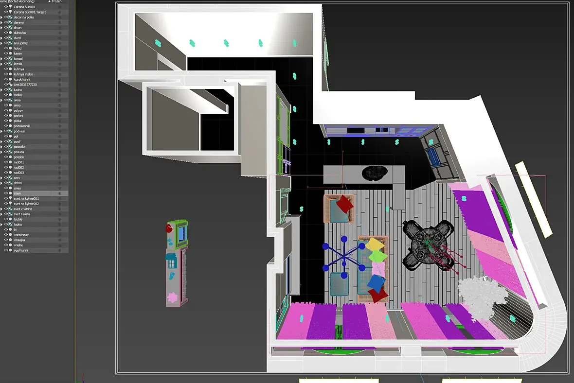 Большое спасибо) Правда, я с горяча, все поудалял, даже номеров не оставил, но остался бэк, видимо сохранился, когда пересохранял для 20 макса. А превьюх больше нет, только край на скрине переписки от 28 декабря. Коридор и гардероб не входил в эту работу, тк тз по ним не было готово, а объем собран на будущее.