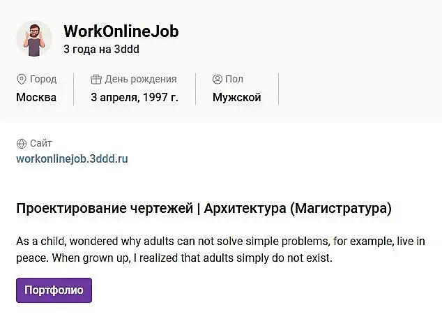 Добрый день всем! Я столкнулась со случаем мошенничества на сайте. Первым делом, конечно, я написала в поддержку, но сюда тоже решила продублировать. Дабы уберечь людей от ошибок. Итак, 25 мая этого года оплатила аванс некоему Дмитрию Николаевичу У из Москвы(предположительно) на создание рабочего проекта интерьера по тз. Буквально прошла неделя молчания, за которую не было задано ни единого вопроса! (что вообще странно, учитывая, что тз не было полным и я обозначала это). Вчера с меня потребовали вторую половину стоимости в обмен на проект. На звонки Дмитрий отказался отвечать, просьбу прислать листы с вотермарками проигнорировал, также отказался прислать хотя бы половину листов проекта. Скриншоты оказались столь низкого качества, что опознать в них проект не представляется возможным. Сегодня утром Дмитрий предложил переслать ему половину от остатка в обмен на проект, но проект прислал в заархивированном виде под паролем. Тел данного персонажа +7 915 840-36-17 . ссылка на ресурс с портфолио https://workonlinejob.3ddd.ru/