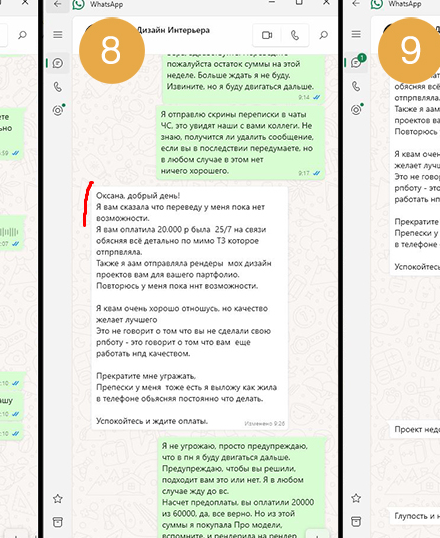 я поняла, спасибо за подсказку. Она опирается в последних сообщениях на качество, но так как в процессе работы этих претензий не было - она совершает мошеннические действия, если не оплачивает работу