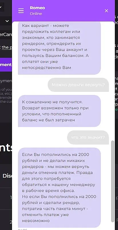 5. По поводу возврата средств Вы также можете обратиться к нам в чат на сайте https://megarender.ru.