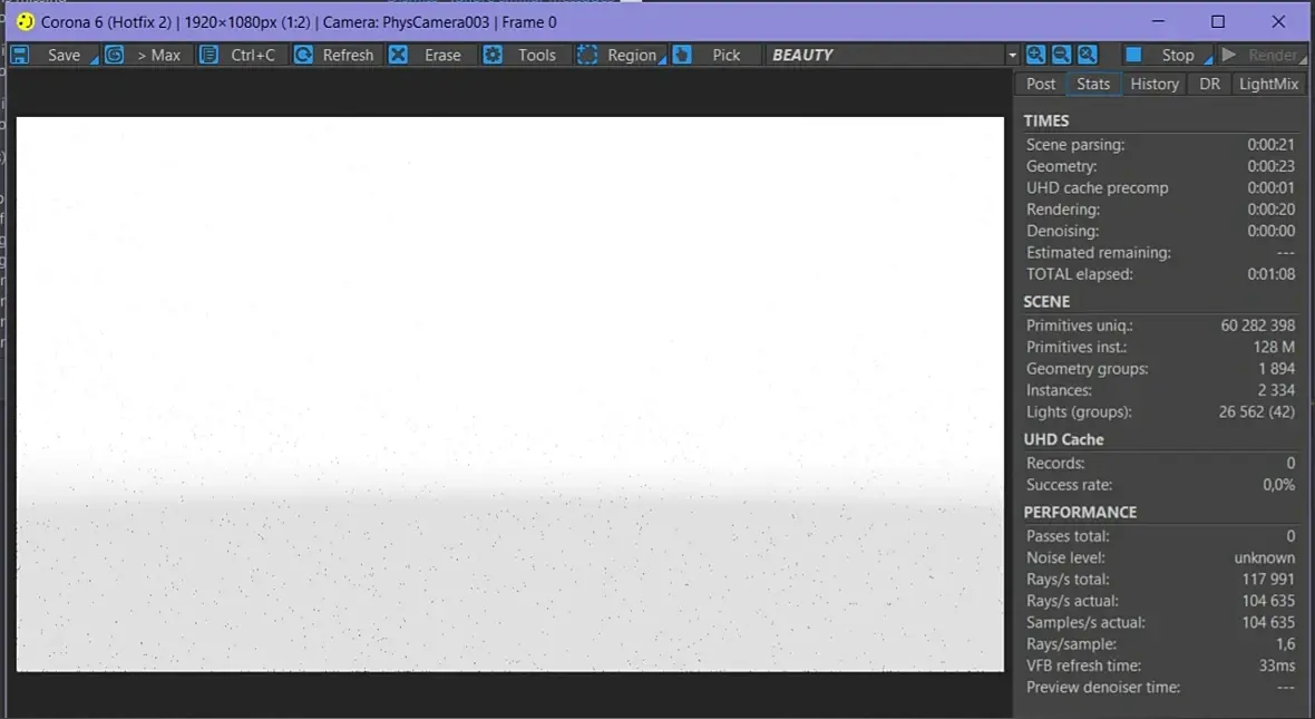 Здравствуйте! Очень нужна помощь по одному вопросу. Почему то 3д макс не грузит рендер, выходит белый экран. Камера не в стене, не в мебели, это точно не в этом проблема, потому что хоть и перспективу я включаю выходит все равно один исход