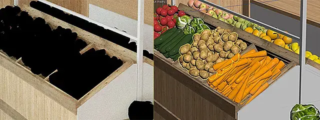 Здравствуйте! Вопрос может немного не по теме, но после чистки сцены плагином Prune Scene (там поставил все галочки, в том числе на отсутствующие битмапы), модель овощей перестала рендерится нормально, а точнее черным цветом, хотя во вьюпорте текстура отображается нормально и до чистки сцены все было прекрасно. Взял текстуру пипеткой, сама текстура не выдает ошибок, все связи есть, наношу на другие объекты все хорошо при рендере, но именно эти модели овощей - черным цветом. Модель и рендер совпадают - Corona. Модель с сайта 3ddd. Сцена облегчилась почти на гигабайт!Подскажите как исправить, так как овощи очень долго расставлял для лавки, а бэкап не сохранился, заново целый день тратить не охото.