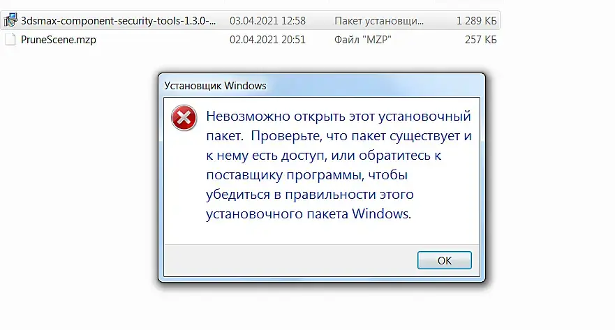Максовский антивирус Security Tools for Autodesk почему-то не устанавливается на компе. (не начинает установку). Пишет, невозможно открыть этот установочный пакет.