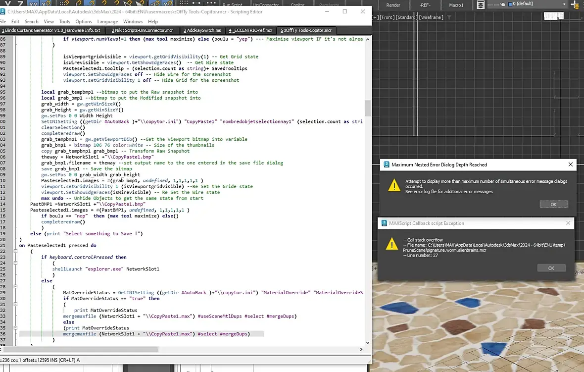 Всем привет. Какая-то фигня со сценой. она простая, но при открытии вылетает 3d макс, а иногда открывается. При попытке почистить с помощью Prune Scene макс просто закрывается.