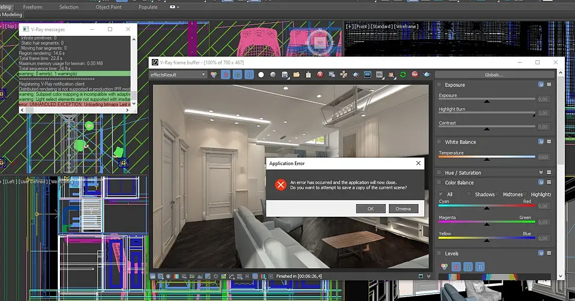 Ребята помогите,Скрипты установила вирусы выявлены, удалены,сцена сохранена, Prune Scene установлено.НО, сцена все равно загружается 45 минут, рендер запускается 40 минут .Вчера все вышеперечисленные действия помогли с другой сценой, а с этой ничего не выходит. Вирусов в ней тех что описаны нет, а глюки остались.Как быть(((((?