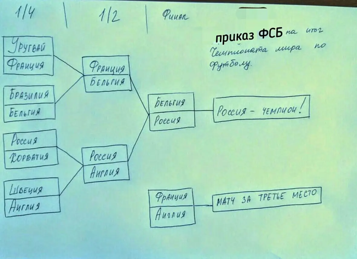 Один мой друг, жгучий либерал и фанат Навального, всерьёз полагает, что сборную Испанию купили, чтобы те поддались и пропустили нас в одну четвёртую финала.