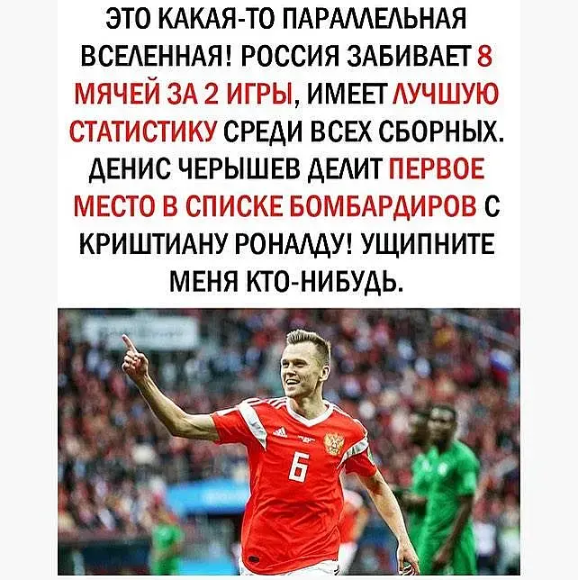 Да я ж не утверждаю =) Но у миллионов телезрителей Копперфильд вагоны испарял, а тут шарик вытащить. Вышли из группы аутсайдеров, ну ок. Это как-бы задача само собой разумеющееся, а радости будь-то чм выиграли. Вот если сильные команды обыграют, то другой разговор, можно уже говорить о повышении качества нашей команды. Но игра с Египтом по мне не очень хорошая. Был бы Салах без травмы, навалял бы нам в ворота. Из трех голов самый техничный и красивый это был второй гол. Вот так и должны играть, а у нас сплошная удача - что в попадании в слабую группу, то автоголы от команды соперников. Даже третий гол случился из-за удачи, что мяч срикошетил в подставленную ногу нашего игрока.