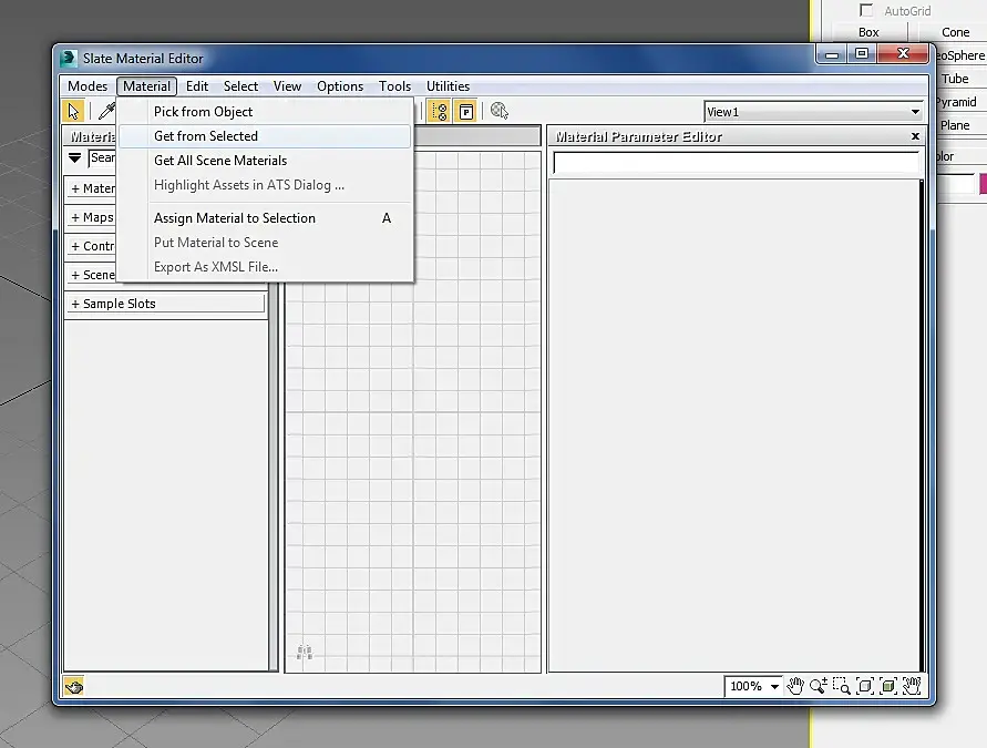 Когда с одного объекта или группы нужно взять материал и есть одна строка в окне ниже , на которую обязательно нажмешь один раз из пяти "Get all scene materials"