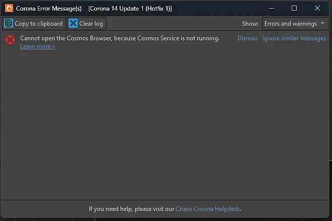 Вылезает такое. Пытался по совету запустить от админ. права C:\Program Files\Chaos\Cosmos - cbservice.exe, но оказалась папки cosmos в принципе нет. Да, версия народная). Заранее спасибо