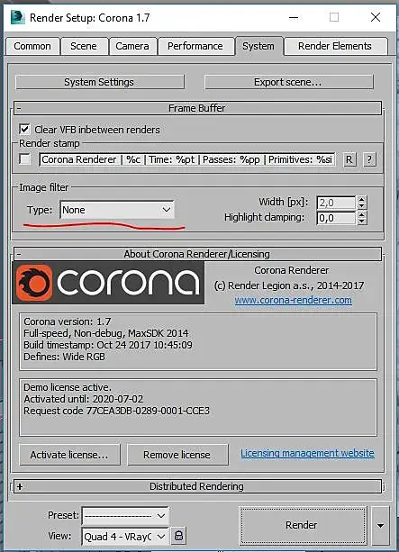 в последнее время тоже начала сталкиваться с данной проблемой. показала настройки рендера всем знакомым, ничего не нашли. сейчас приступила к новому заказу и то же самое. рендер получается очень пиксельный, как будто денойзинг не работает, а в некоторых местах очень мыльный. вот картинка 1, разрешение 1500 на 2000. нойз левел лимит 3%, денойзинг через корона хай куалити 0,65 и радиус 0,8. казалось бы все ок. но при увеличении картинки видно каждый пиксель. и сама картинка какая-то плоская. дверь вообще вся замылилась, как будто она ровная, но она со фрезеровкой. не знаю что делать. свет настаиваю через лайтмикс. вторая картинка: рендер моего друга, в этой же сцене, настройки рендера, такие же как и у меня, но разрешение кадра 1500\1500. но он у него намного чище чем мой с разрешением выше. я еще делала тестовый рендер с разрешением 3000\4000 и оно намного чище конечно, но эта проблема с "плоскостью" картинки мне не дает покоя. помогите, весь интернет облазила, не знаю что делать. раньше такой проблемы не было. а недавно стала пересматривать работы и последних проектах 3 такая лажа либо с шумом либо с мыльностью