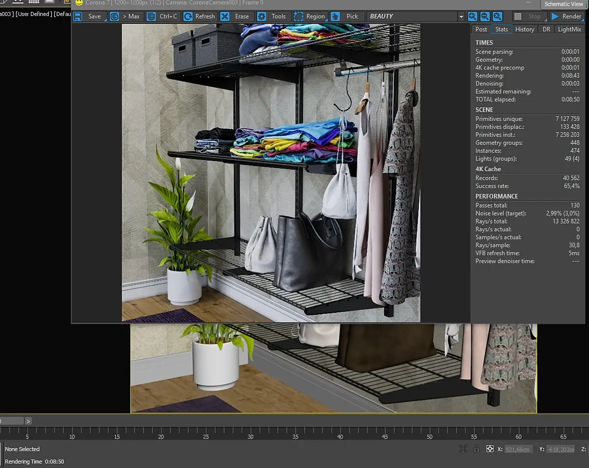Сначала думал, что это из-за того, что порталы больше не поддерживаются (тестил на большом помещении с маленьким окном). Но в сценах с большими окнами точно такая же история. Там, где лимит шума в 2% достигался за 40 минут, семерка пишет, что время рендеринга займет 7 часов 30 минут. Што? Пятая версия даже без порталов не рендерит так долго. Жесть какая-то.