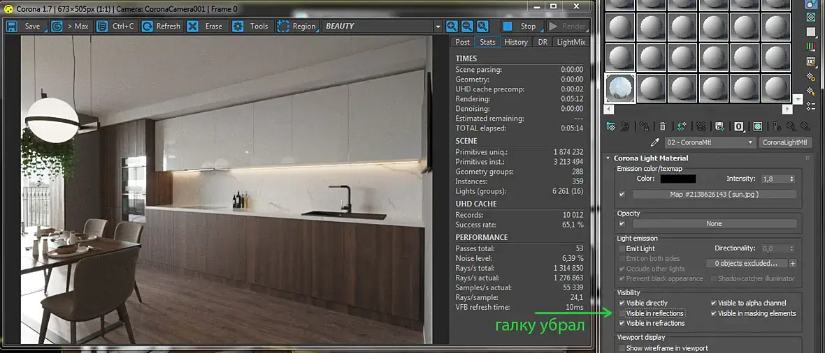 Доброго дня, вопрос знатокам Corona, как избавиться от черных отражений бекграунда, использую плейн за окном.