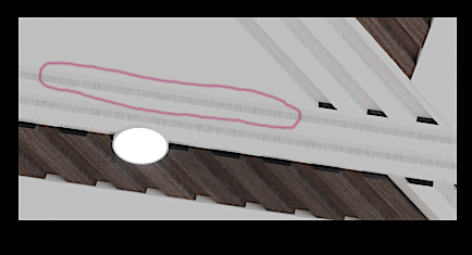 делал рейки на потолке модификатором дисплейс корона, в качестве карты gradient ramp (solid)