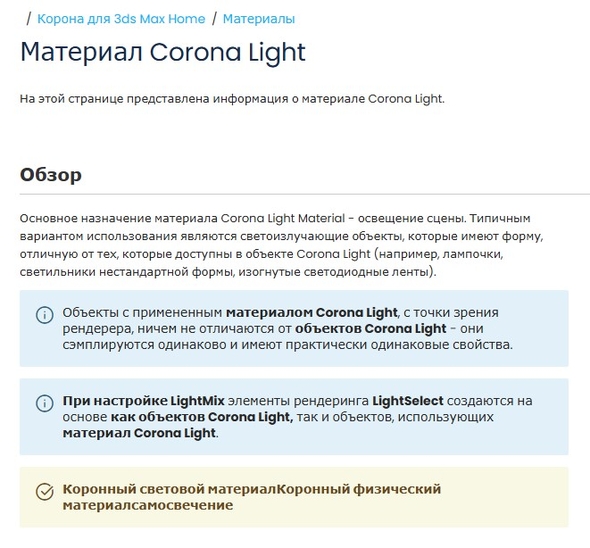 и ни кому в голову не приходит мысль зайти и почитать хелп. Использовать CoronaLight Mtl можно спокойно как основной источник света. нужен он исключительно для того что бы сделать источник света отличный по форме от стандартных форм имеющихся в Corona Light. А не использовать как основной источник света относится к функции базового короновского материала. Для старых корон Corona Mtl (Legacy сейчас) и Corona PhysicalMtl и функции self illumination. Все написано в хелпе и не нужно плоджить мифы.
