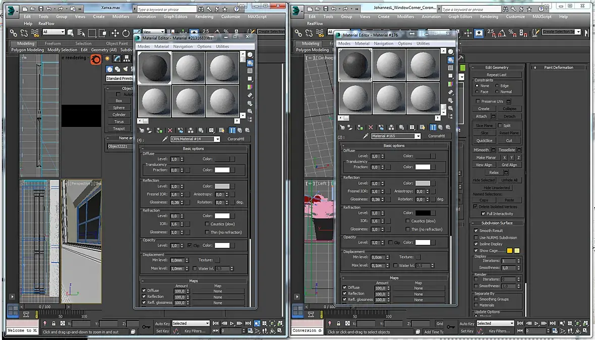 Открыл 2 макса, копирую значения материалов, цвет все один в один...но на превью они получаются разные (блеск). Никто не в курсе почему так происходит?)
