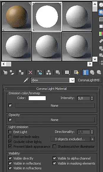 Добрый день. Corona render 1.6. Столкнулся с такой проблемой: при добавлении фона в сцену (геометрия с материалом CoronaLightMtl, галка Emit Light отключена) появляется неправильный блик. Повышение значение Intensity в данном материале проблему не решает.