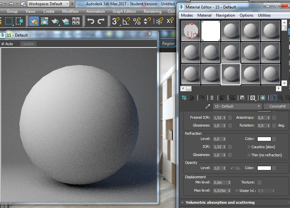 Решила перейти с vray на corona. подскажите почему у меня мат в слоте выглядит зернистым, на рендере тоже самое?