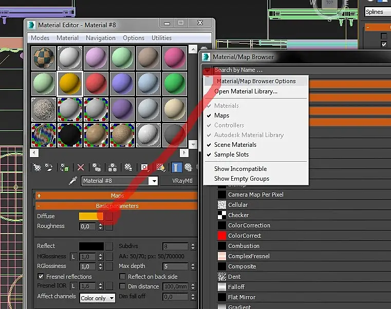 Нужно щелкать по зеленой области, а не красной. Красная позволяет менять тип текущего материала, а поскольку карты к материалам не относятся, то они и неактивны