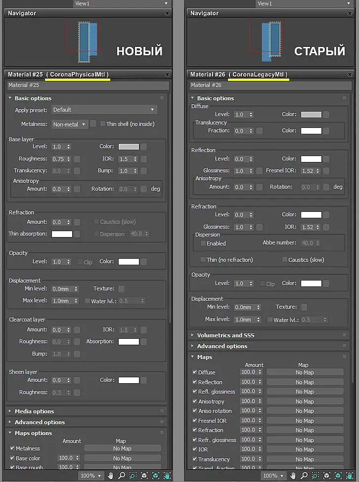 Тем временем в Corona Renderer 7 Daily Builds от 10.12.2020 появился новый (для кого-то долгожданный) PBR материал - "CoronaPhysicalMtl", а старый "CoronaMtl" переименован в "CoronaLegacyMtl".