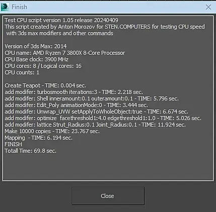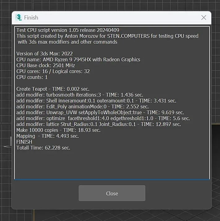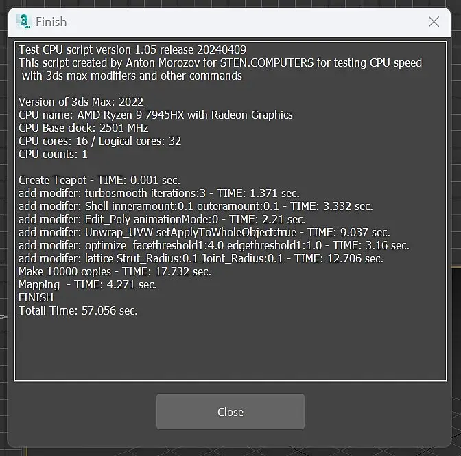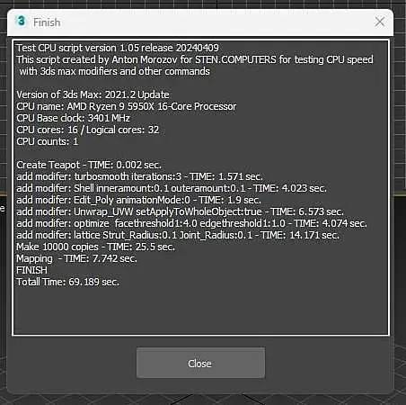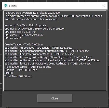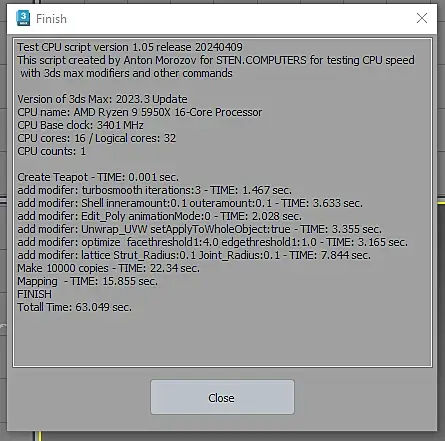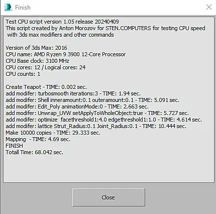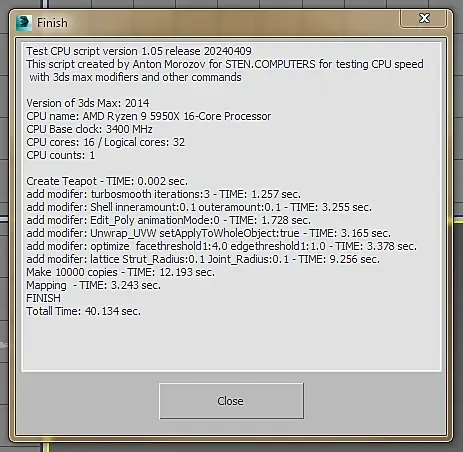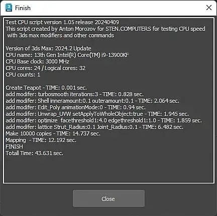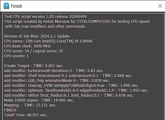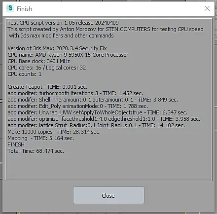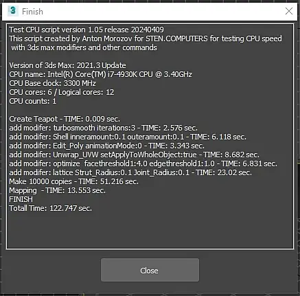 win10, свежая, ставил неделю назад. Память 2/32 5600. В пике проц до 5,5 в тесте поднимается. Лимиты только по температуре - 85c. Почему так долго на мапинге, не могу понять. По всем остальным показателям все норм. Если закрыть все лишнее в винде, рисует 90сек. Cinebench 23 - 37200 с лимитами 85с. В тесте Corona 1.3 - 36 сек.