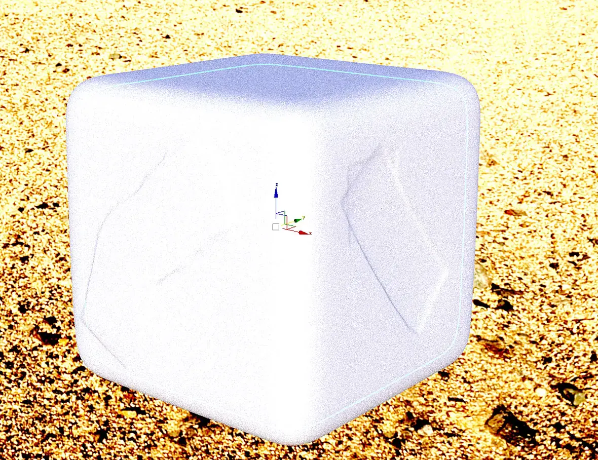 Проблема в том что этот дисплейсмент не создаёт углубления, а только раздувает геометрию. Дисплейсмент должен создавать и углубления, и выпуклости. Это довольно простая штука, почему Врей по-другому делает? Почему он считает что серый цвет 0,5 в 32-битном формате - это выпуклость? Это нейтральный цвет, который должен не вносить никаких изменений