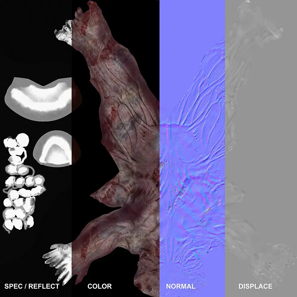 Погуглил, реально дисплейсмент в Вирее только надувает геометрию. Карты чёрно-белые, похожие на альфы, где чёрный цвет - без изменений, а белый - выдавливание. Про вдавливание и углубления пока никакой информации. Как же персонажку в нём делать? Должны быть серые, как черно-белый бамп, как и во всех нормальных движках
