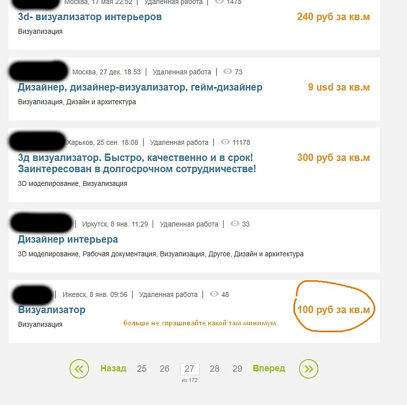 dudefromrussia зачем считать чужие деньги? кто на сколько уверен, и понимает, какая вероятность при какой цене ему заказы прилетят - то и ставят. Конкуренция большая, уже и на 350 р. кривят рожу - дорого!