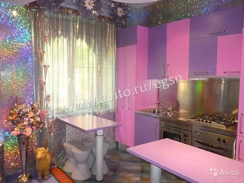 Розово-пурпурная кухня - это верх китча и тупости, свойственной некоторым отечественным производителям и потребителям. Дизайн-розовое гуано, но дело уже даже не в этом. Как узаконили перенос мойки за плиту????? Кто разрешил зашивать коммуникации и трубы газовой плиты? Если это дизайн, то я в этой жизни вообще ничего не понимаю, разве что отойду и меня немного потошнит радугой.