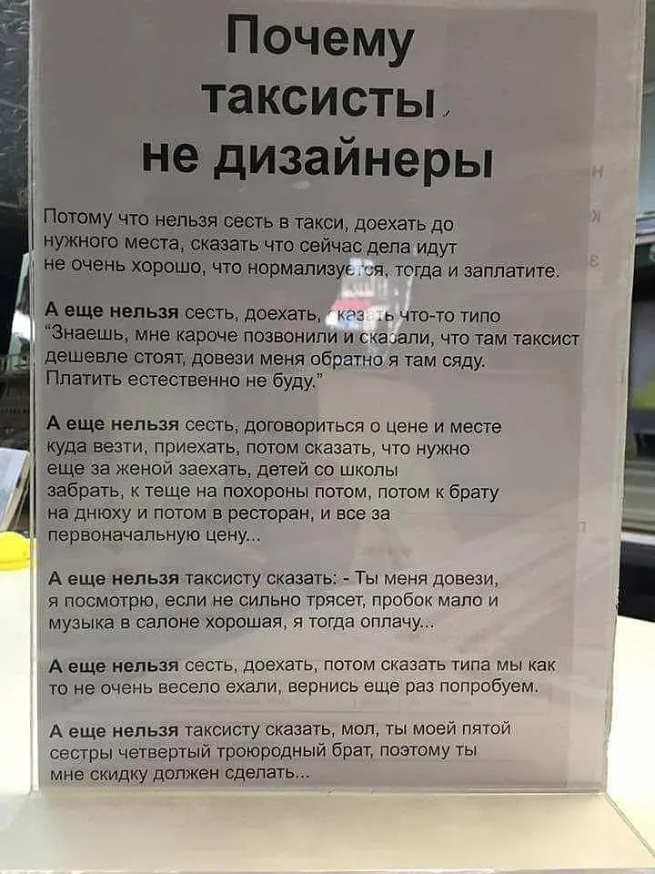 А ещё нельзя всю дорогу помогать таксисту крутить руль, переключать передачи, нажимать на тормоз, где тебе нравится, а потом сказать, что ты сам вел машину, за что только деньги этому неумехе заплатил.