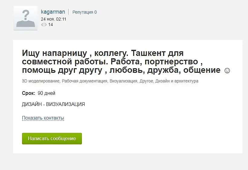 Ну а почему бы нет?)Мало ли смешных вакансий теперь? Слово "портнерство"ваще доставляет. Забыли указать (брак не предлагать))))