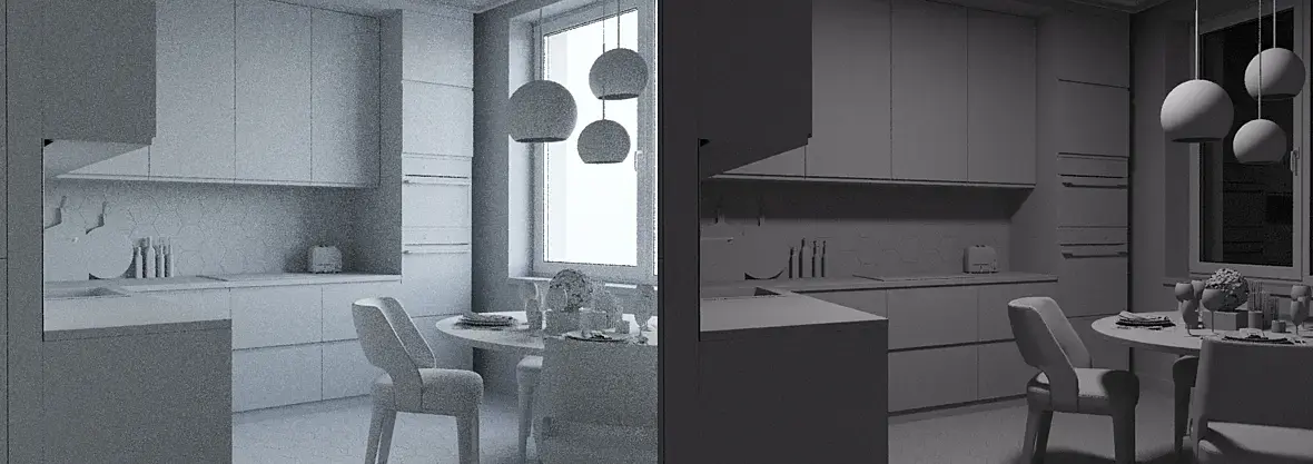 На данный момент такая ситуация: кухня-гостиная на 8млн поликов, хочет рендерить 5 часов (лимит ставлю на 2 шума, для моего компа это долго), в среднем похожие помещения просчитываются за час максимум полтора.