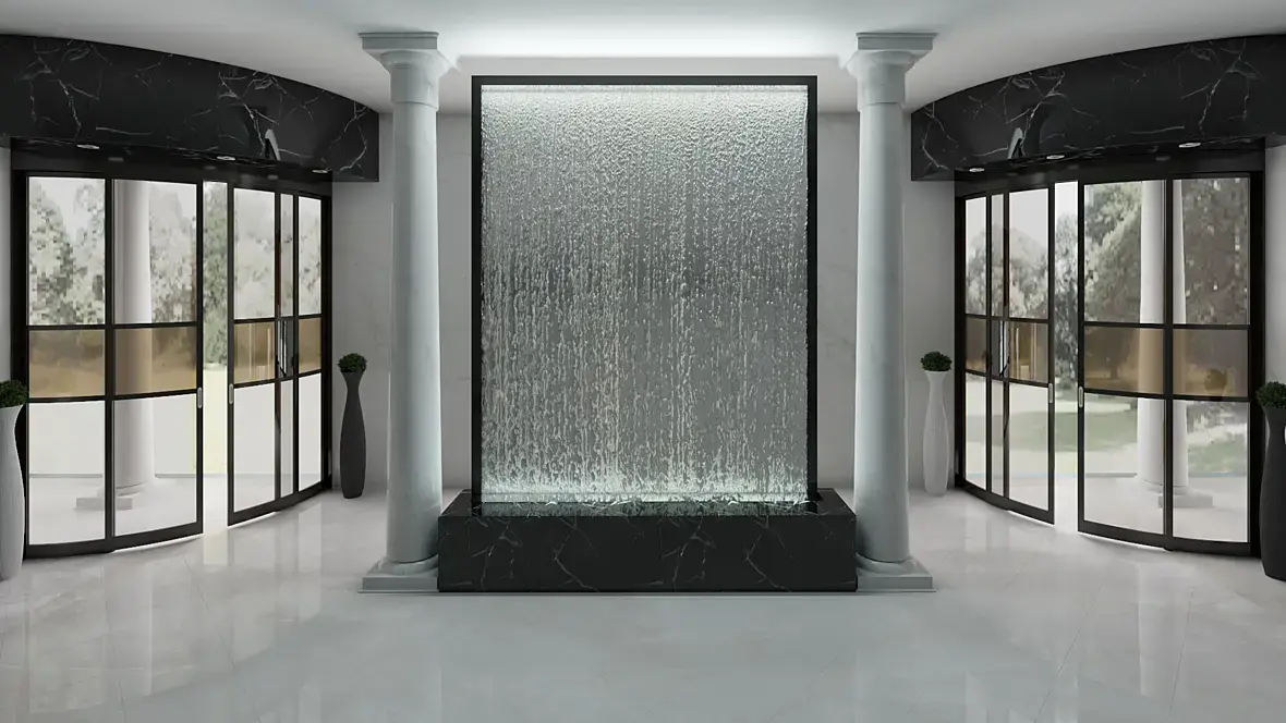 можно расположение водопада оставить как было, только светлым оставить над дверьми потолок.только сейчас желтым стала картинка.