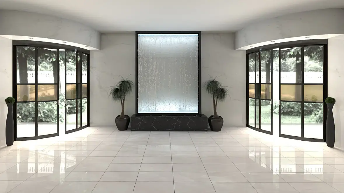 Вообще, к таким дверям обязательны направляющие в полу, иначе лажово выглядит. Эти мелочи придают картинке реалистичность.