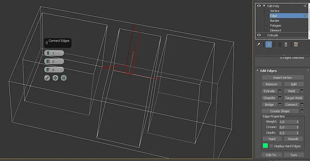 Делаю стены: сплайнами обвожу планировку → Attach всё в один сплайн → Extrude → модификатор Edit Poly. Теперь хочу нарезать ребра для проемов и обнаруживаю двойные ребра, хотя вершины которые они соединяют не двоятся. Соответственно Connect работает некорректно. Не могу понять в чем проблема. 3ds Max 2023 установлен