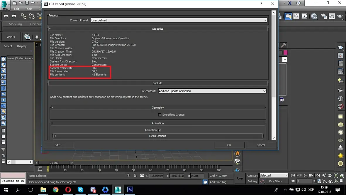 Сам вопрос - поменял я в Time configuration frame rate на 12 и сделал анимацию на 16 кадров зацикленую. При экспорте в fbx поставил bake animation на 16 кадров, всё хорошо. Но при импорте этого fbx показывает file frame rate 30 и анимацию на 40 кадров что за дела?. Буду очень благодарен за помощь.