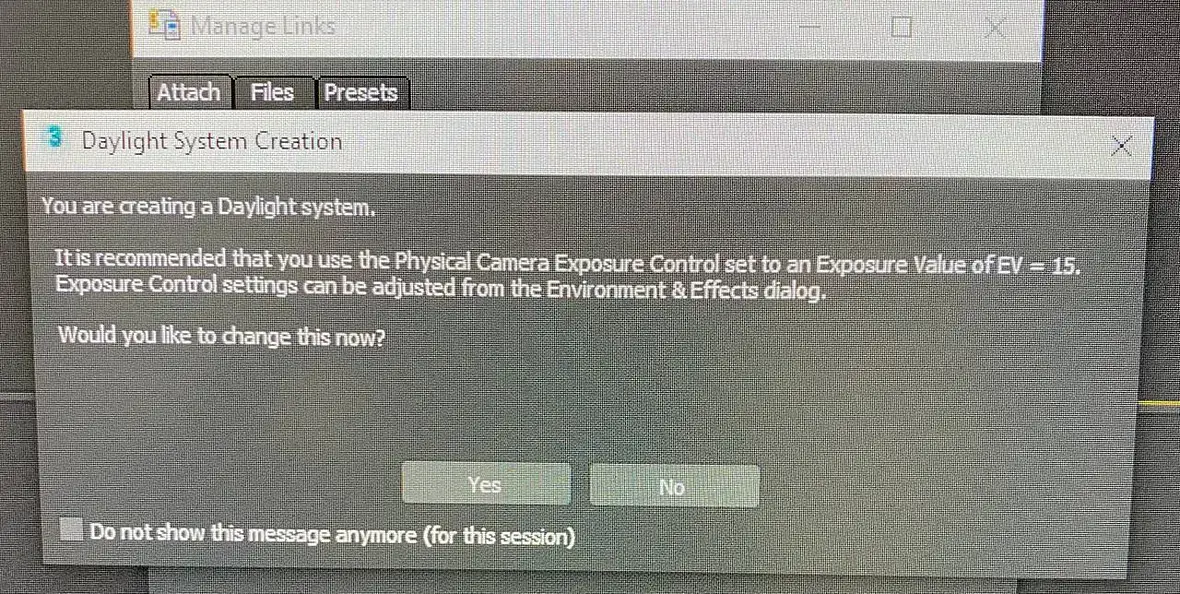Добрый вечер. Подскажите пожалуйста, столкнулась с такой проблемой. При экспорте модели из revit в 3ds max возникает сообщение о создании daylight system. После чего фон вьюпорта с перспективой становиться белым. Я так понимаю это экспортируется освещение из revit? Как можно это отключить, чтоб настраивать освещение в сцене только через макс.